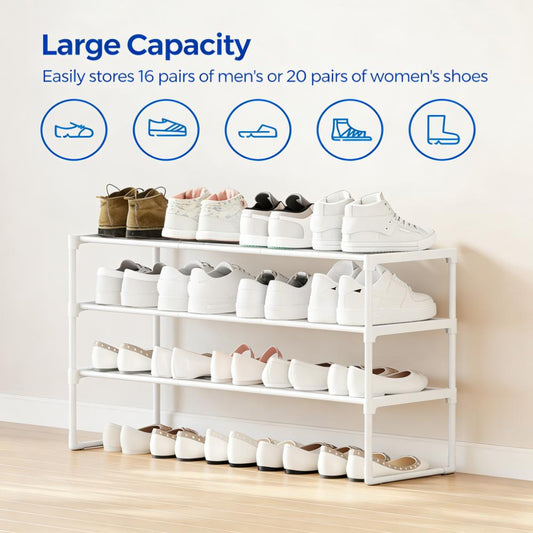 4-Tier Stackable Shoe Rack with Large Capacity for Entryway Organization